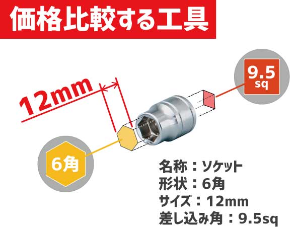 乗用車の整備でよく使用するソケットを例に、メーカ―ごとの価格比較します。