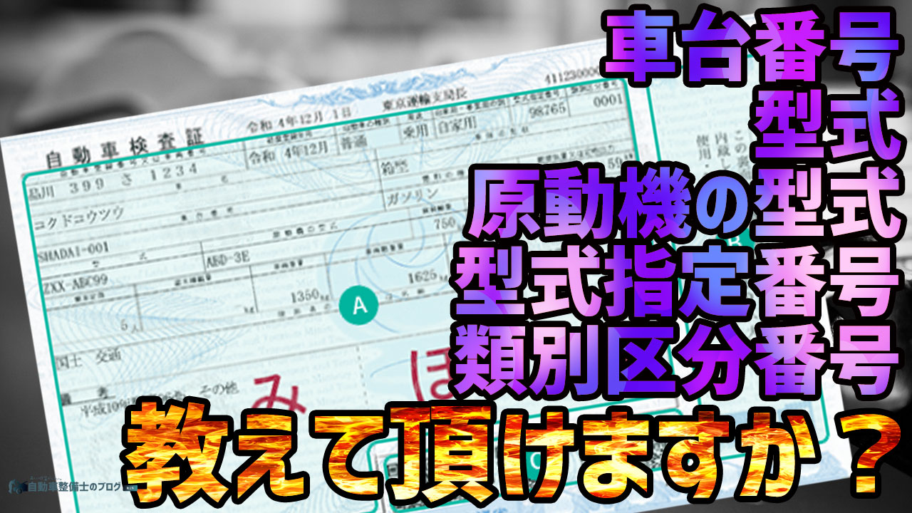以上を利用して、私たち自動車整備士はその車両の情報を特定して、作業情報を確認したり部品を発注したりしています。